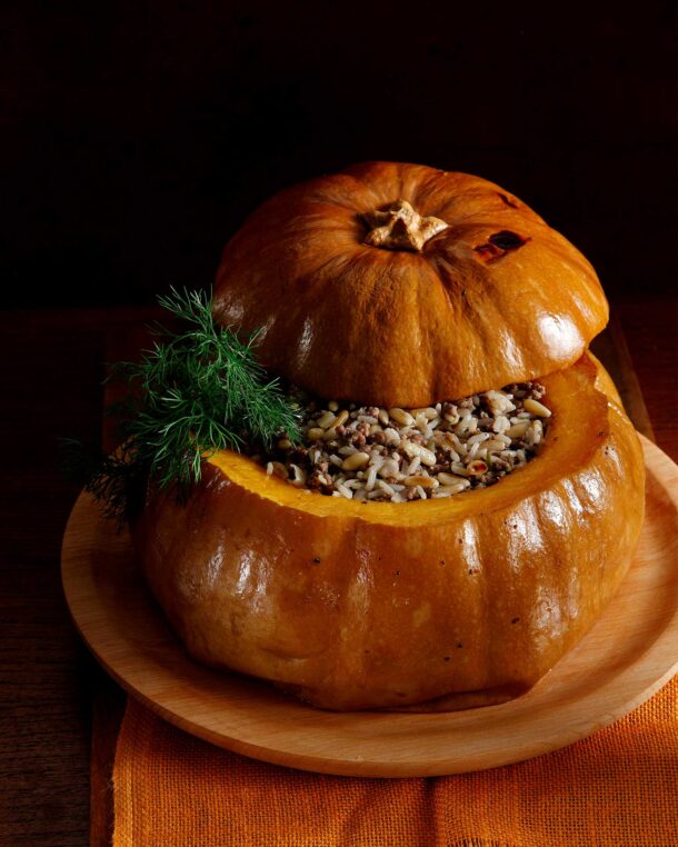 Një nga gatimet më ikonike të festave armene, kungulli i mbushur me oriz, bajame, mjaltë dhe kanellë, është një ushqim plot simbolikë dhe aq i lidhur me traditën e vendit saqë një këngë veçanërisht popullore është shkruar në nder të tij.