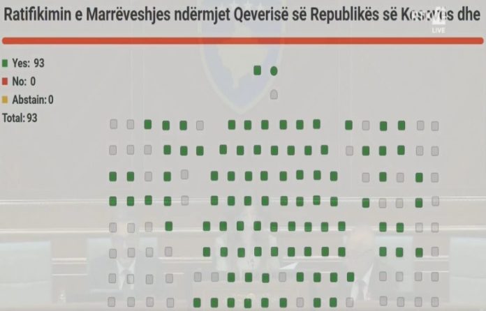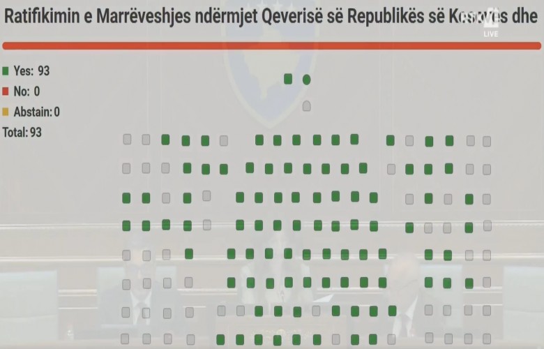 Me 93 vota për, asnjë kundër dhe asnjë abstenim, deputetët e Kuvendit të Republikës kanë ratifikuar marrëveshjen ndërmjet Kosovës dhe Këshillit të Ministrave të Republikës së Shqipërisë për Lojërat Mesdhetare “Prishtina 2030”, për shqyrtimin e së cilit u desh të bëhej shmangie nga procedurat kuvendare.
