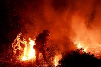 Ekipet e shpëtimit gjatë operacionit të kërkimit të trupave në vendin ku një helikopter që po bartte presidentin iranian, Ebrahim Raisi, u rrëzua në një…